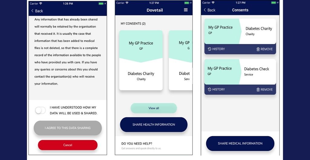 Patients with diabetes often must see many different stakeholders who each specialise in different aspects of their treatment. Researchers from WMG, University of Warwick surveyed patients on their understanding of how their data was shared and found they would prefer to have it shared digitally using the Dovetail Digital consent application.